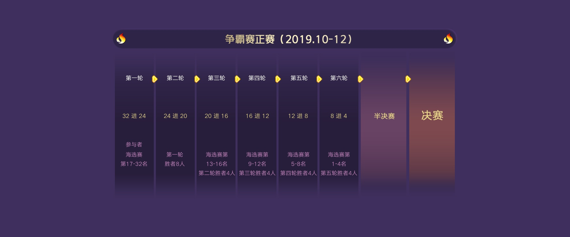 一、对阵规则:2019.12-2020.1、2-3月人气榜总排名前32名入围排位赛,名次即为序号,每个轮次内首尾相衔编排。比如17VS32,18VS31……23VS24。每一轮的胜者取代原有名次成为下一轮的序号,同样按首尾相衔的原则进行新区间的编排。8强赛重新定位,海选赛前4名按名次顺序从另外4名棋手中依次选择对手。
