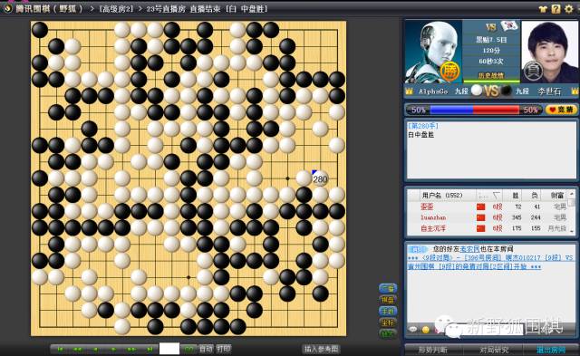 到17点02分,局势明晰,黑棋盘面四目左右,不足以贴目。李世石最终认输。