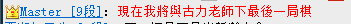令人窒息的等待过后,Master居然在大厅聊天中说话了,表示希望和中国围棋的传奇人物,八冠王古力进行最后一局对弈,并祝各位棋友玩得愉快。